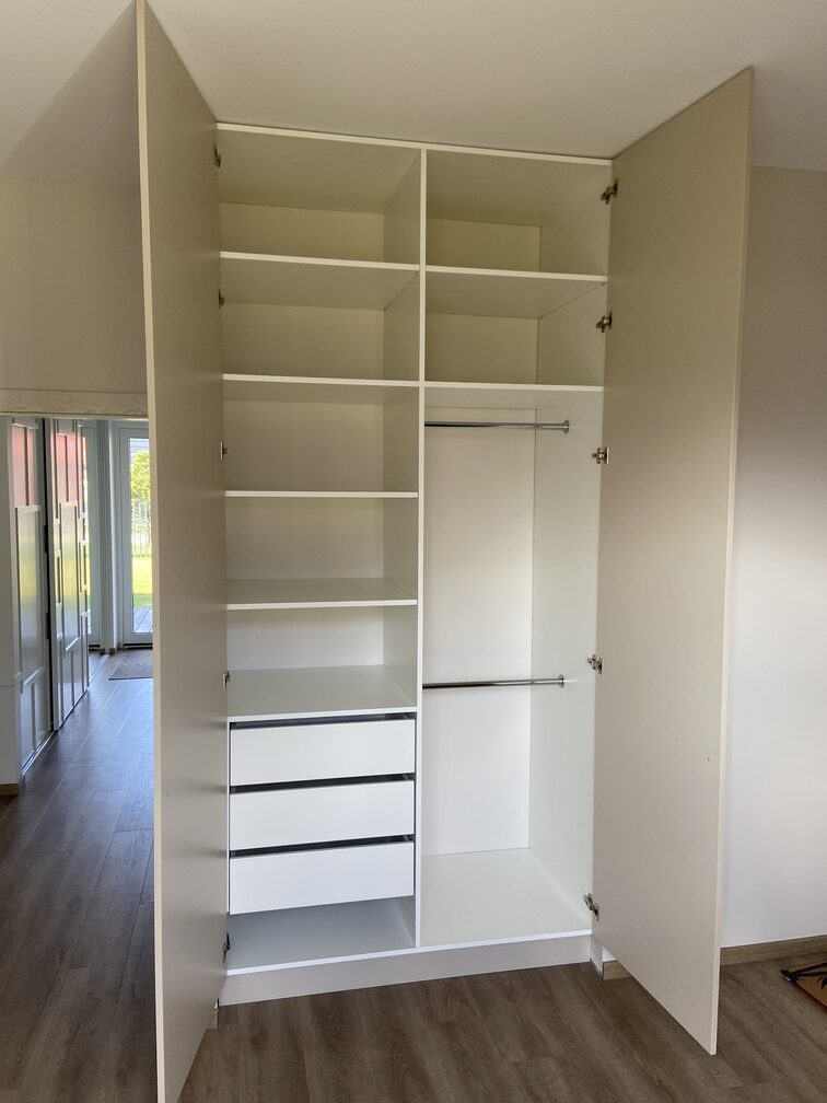 Unikalių spintų kūrimas taip pat leidžia jums pritaikyti spintas pagal savo poreikius ir interjero stilių. Galite pridėti specialias skyrių padalijimo sistemas, lentynas ar ištraukiamus stalčius, kad spinta būtų patogesnė ir pritaikyta jūsų konkrečiam saugojimo poreikiui. Taip pat galite įtraukti šviesos elementus, kad spinta būtų gerai apšviesta ir padėtų paryškinti ypatingus daiktus.